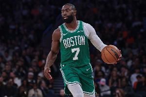 挑大梁!杰伦-布朗半场10中8砍最高22分 三分5中4